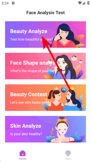 1、打開智能人臉測(cè)試應(yīng)用,點(diǎn)擊Beauty Analyze選項(xiàng)。