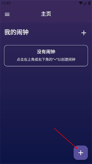 2、在主頁的我的鬧鐘區(qū)域,點擊右下角的加號按鈕,進入鬧鐘設(shè)置頁面。
