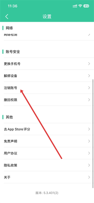 3、在設(shè)置頁(yè)面中,找到并點(diǎn)擊注銷賬號(hào)選項(xiàng)。