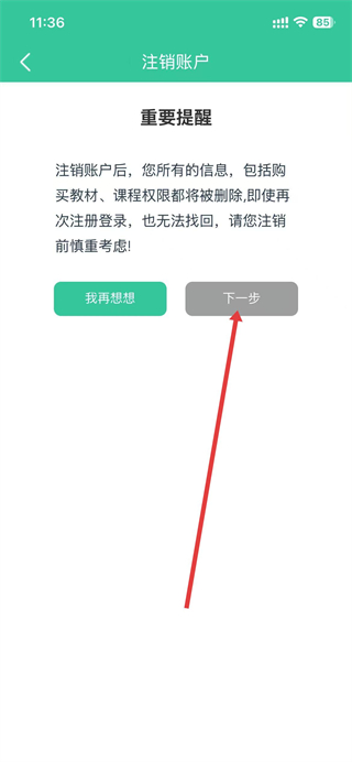 4、在彈出的頁(yè)面,點(diǎn)擊下一步,根據(jù)提示完成注銷操作。