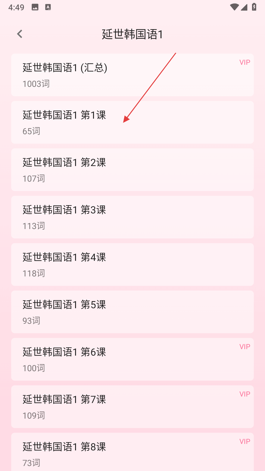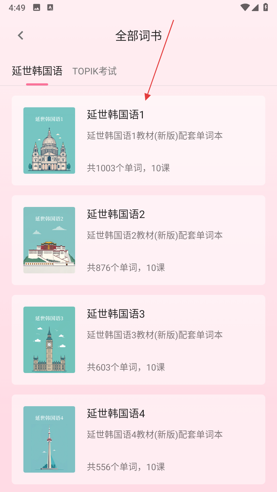 2、在全部詞書頁(yè)面,選擇想要學(xué)習(xí)的詞書,進(jìn)入該詞書的課程列表頁(yè)面。