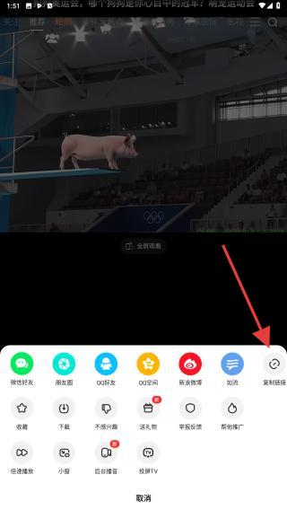 2、點(diǎn)擊后即可彈出菜單欄,在最上方那一欄找到復(fù)制鏈接并點(diǎn)擊。