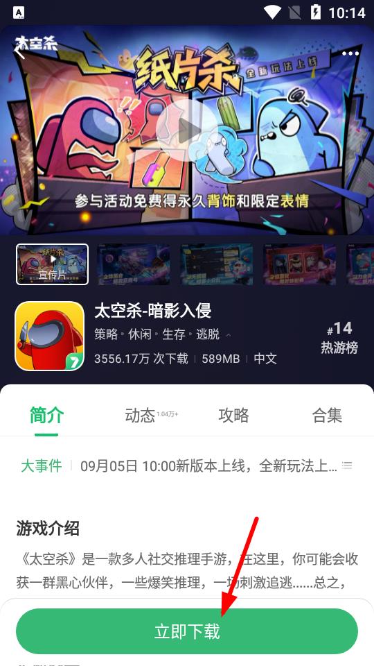 2、點(diǎn)擊游戲進(jìn)入詳情頁(yè),了解游戲介紹、動(dòng)態(tài)、攻略等信息后,點(diǎn)擊立即下載按鈕,等待游戲下載安裝完成。