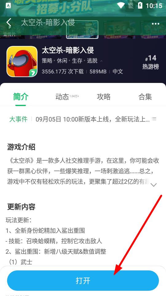 3、游戲安裝好后,在游戲詳情頁(yè)點(diǎn)擊打開(kāi)按鈕,就能啟動(dòng)游戲,開(kāi)始盡情體驗(yàn)游戲樂(lè)趣。