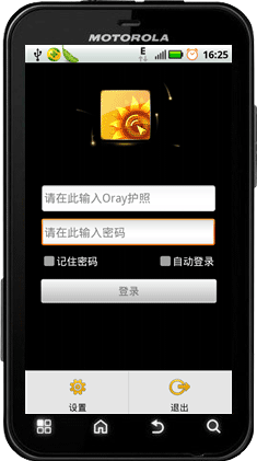 主控端安裝成功后,使用Oray帳號(hào)和密碼即可登錄Android主控端。