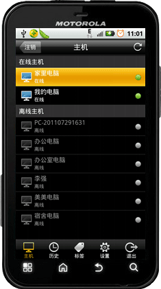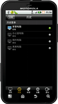 在下方的的操作中我們可以看到除了主機(jī)外還有歷史、標(biāo)簽、設(shè)置、退出四個(gè)功能。
