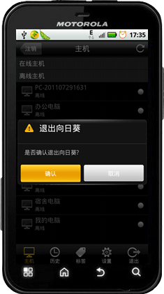 點(diǎn)擊退出按鈕,確認(rèn)退出后,可直接退出向日葵Android主控端。