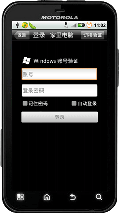 Android版主控端登錄遠(yuǎn)程主機(jī)與PC主控端登錄遠(yuǎn)程方式一樣,都需要進(jìn)行二次密碼驗(yàn)證,windows賬戶驗(yàn)證和訪問密碼驗(yàn)證。