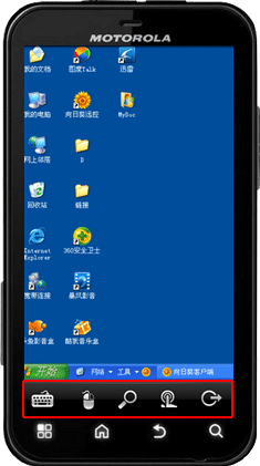 在遠(yuǎn)程主機(jī)桌面下方,我們可以看到有五個(gè)功能按鈕,分別代表鍵盤、鼠標(biāo)、縮放大小、設(shè)置、退出。