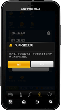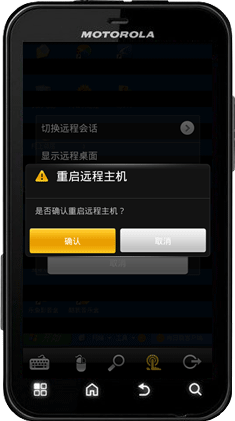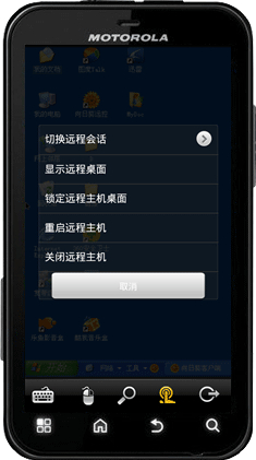 鍵盤、鼠標(biāo)、縮放功能、退出都比較簡(jiǎn)單,分別可調(diào)出電腦鍵盤,調(diào)動(dòng)電腦鼠標(biāo)方便控制;可以根據(jù)自己的需求縮放屏幕;退出Android主控端。要說的就是功能鍵,點(diǎn)擊“功能鍵”可進(jìn)行切換遠(yuǎn)程會(huì)話、顯示遠(yuǎn)程桌面、鎖定遠(yuǎn)程主機(jī)桌面、重啟遠(yuǎn)程主機(jī)、關(guān)閉遠(yuǎn)程主機(jī)操作。