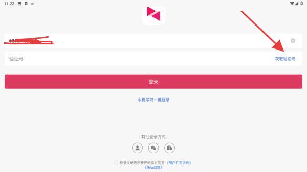 2、輸入要登錄的手機(jī)號(hào),并點(diǎn)擊獲取驗(yàn)證碼。