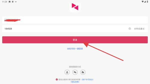 3、將收到驗(yàn)證碼輸入進(jìn)去后,再點(diǎn)擊登錄的按鈕即可。