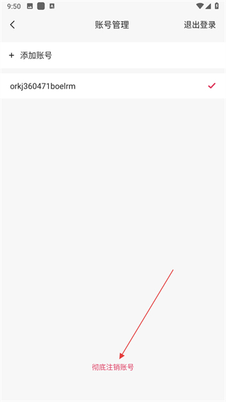3、在賬號(hào)管理頁面,找到并點(diǎn)擊頁面底部的徹底注銷賬的號(hào)選項(xiàng)。
