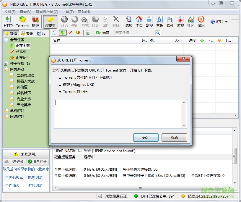 ①一般來說打開BitComet后,等待一會兒就可以連上DHT節(jié)點。如果沒有連接上,只要打開一個包含DHT信息的種子,通過連接已經(jīng)連入DHT節(jié)點的用戶即可加入DHT網(wǎng)絡。 也就是說打開一個熱門種子,進行上傳或下載,基本上能很快連入DHT網(wǎng)絡。