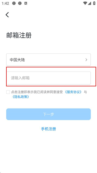 2、選擇郵箱注冊,輸入郵箱。