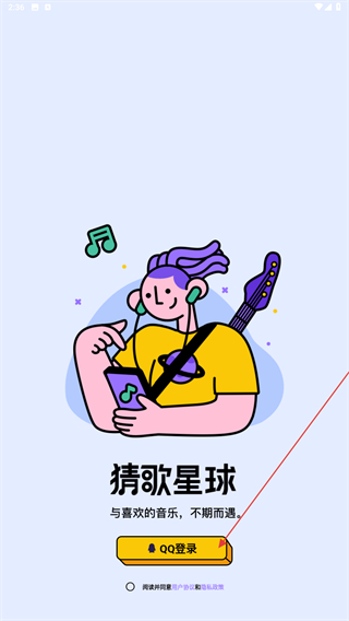 1、打開猜歌星球的APP,進(jìn)入時(shí)點(diǎn)擊QQ登錄的按鈕。
