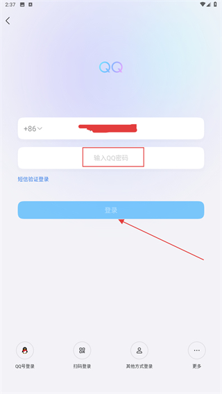 4、輸入QQ密碼后,再點(diǎn)擊登錄的按鈕即可完成登錄。