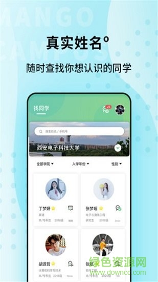 「真實姓名」隨時查找你想認(rèn)識的同學(xué)。