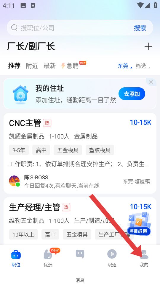 1、在智通直聘app界面點(diǎn)擊我的選項(xiàng),進(jìn)入個(gè)人頁面。