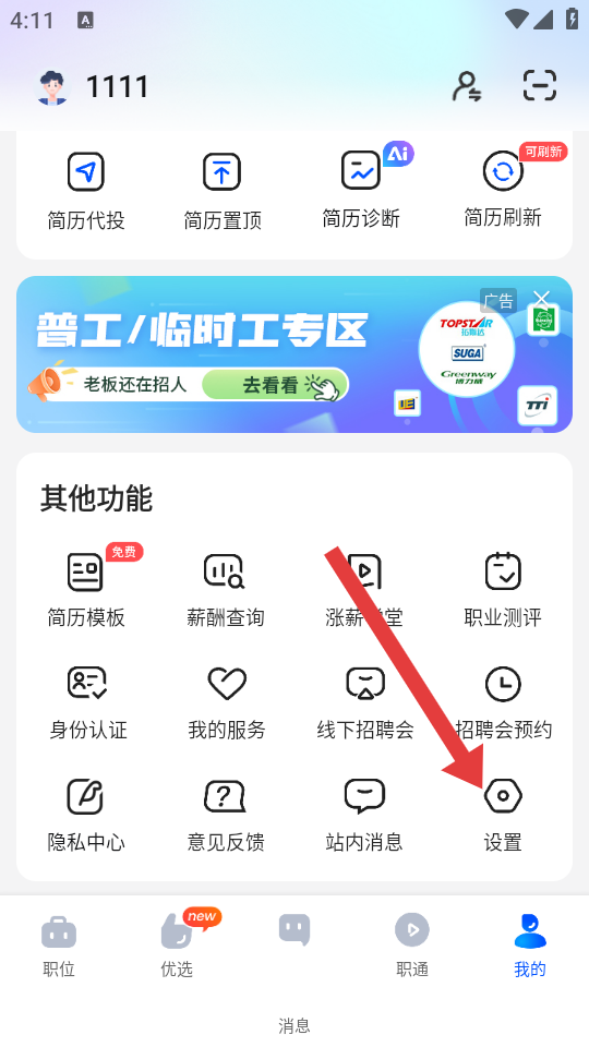 2、在個(gè)人中心頁面的其他功能區(qū)域,點(diǎn)擊設(shè)置選項(xiàng),進(jìn)入設(shè)置頁面。