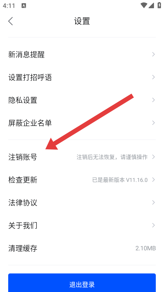 3、在設(shè)置頁面中,找到注銷賬號(hào)選項(xiàng),點(diǎn)擊進(jìn)入賬號(hào)注銷確認(rèn)界面。