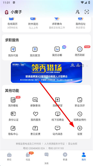 1、在智通人才網(wǎng)首頁底部導(dǎo)航欄,點(diǎn)擊我的選項(xiàng),進(jìn)入個(gè)人中心頁面。