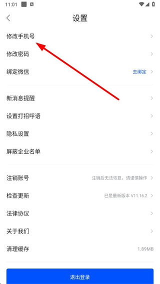 3、在設(shè)置頁面點(diǎn)擊修改手機(jī)號(hào)選項(xiàng),進(jìn)入修改手機(jī)號(hào)頁面。