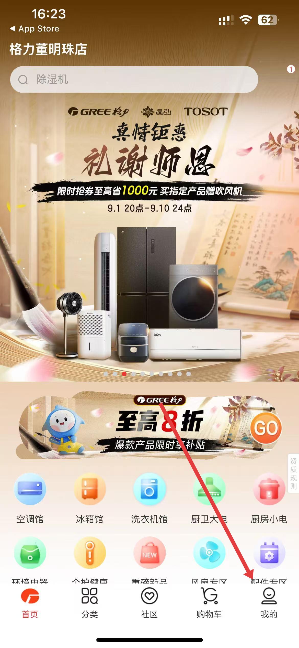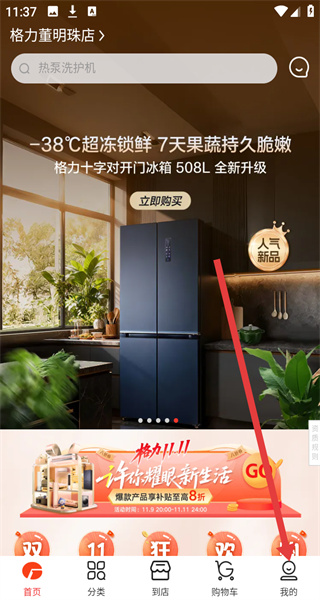 1、格力董明珠店APP首頁點擊右下角“我的”,進入個人中心頁面。