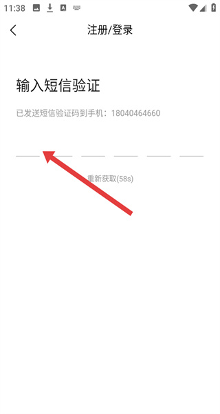 4、進入輸入短信驗證頁面,輸入收到的驗證碼,完成賬號登錄操作。