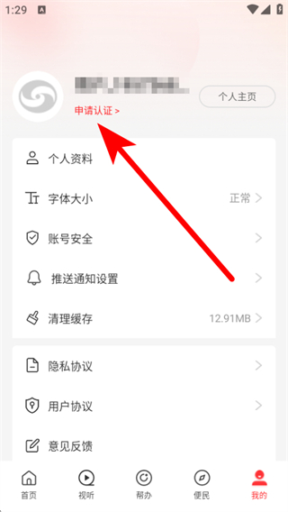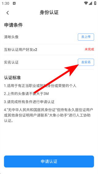 2、在個(gè)人的頁(yè)面,點(diǎn)擊申請(qǐng)認(rèn)證,進(jìn)入大象認(rèn)證的頁(yè)面。