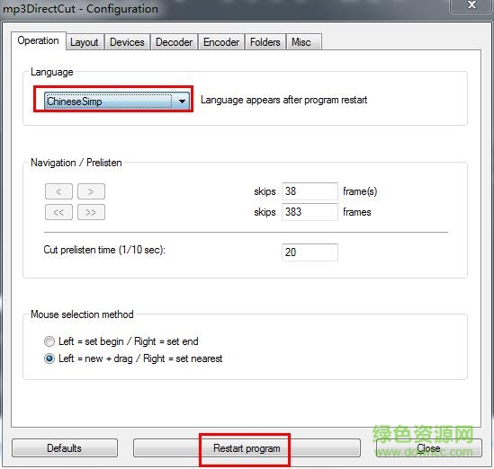 2.language處選擇語(yǔ)言,選ChineseSimp,點(diǎn)擊Restart program重啟軟件
