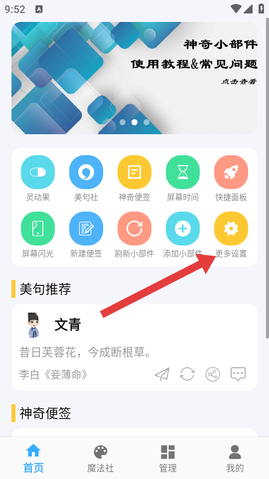 6、神奇美句文本小部件,除了內置美句社區(qū)海量精品美句,還可以選擇網易云熱評或者自定義一句或多句句集,讓桌面更文藝、更好看、更酷一點...,用神奇小部件,看走心的評論,聽好聽的音樂。