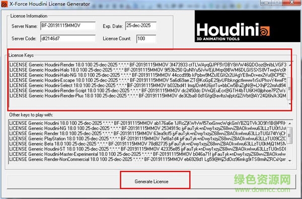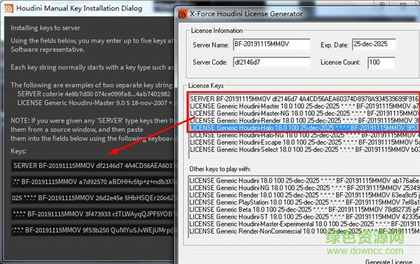 8、運(yùn)行houdini18_kgn.exe,將對(duì)應(yīng)License server host和License server code,復(fù)制到注冊(cè)機(jī)中