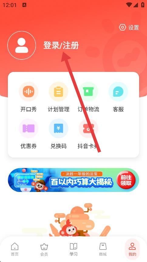 2、進入我的頁面后,點擊登錄/注冊按鈕。