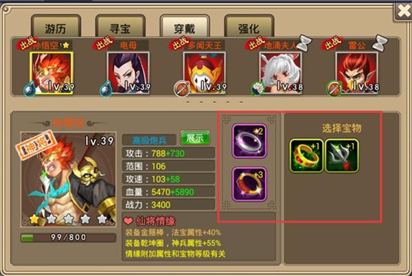 4、選擇寶物為武將佩戴,提升武將屬性,增強(qiáng)戰(zhàn)斗能力。