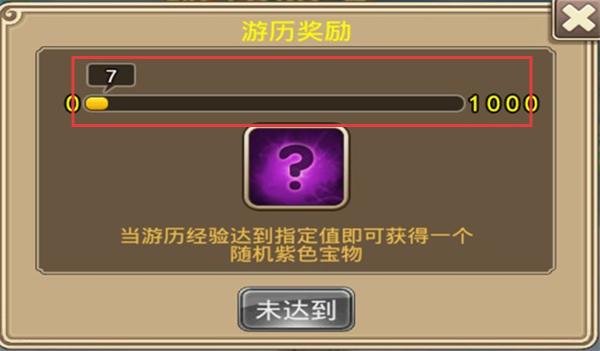 3、積累游歷經(jīng)驗(yàn),當(dāng)進(jìn)度條達(dá)到指定值,可解鎖隨機(jī)紫色寶物。