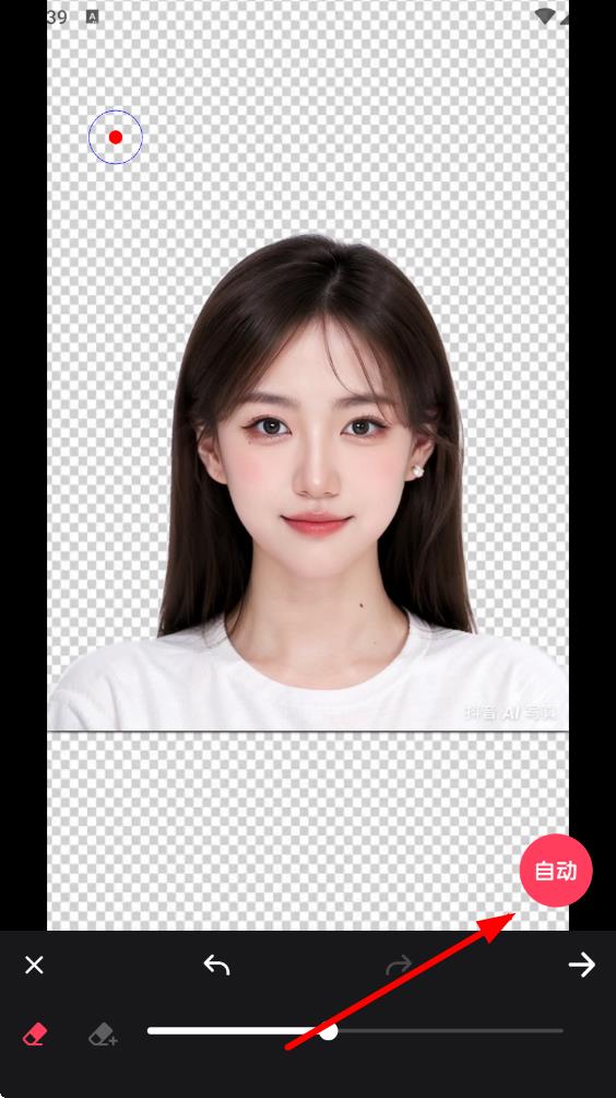 2、從相冊中選取需要更換背景顏色的照片,點擊右下角的自動按鈕,自動進行人像摳圖。