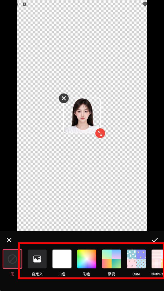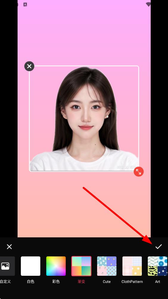4、選好后點擊右下角的對勾按鈕,保存更換背景顏色后的照片。