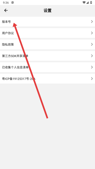 3、在進入到設(shè)置頁面后,可以點擊版本號選項,跳轉(zhuǎn)頁面查看當(dāng)前版本信息。