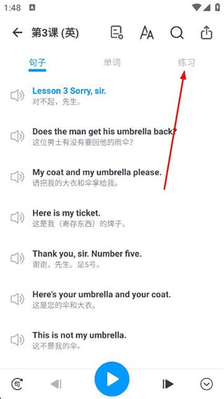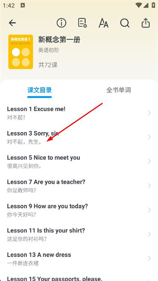 2、新概念英語1-4冊(cè)全部?jī)?nèi)容都打包在應(yīng)用里,不需要聯(lián)網(wǎng)即可使用。