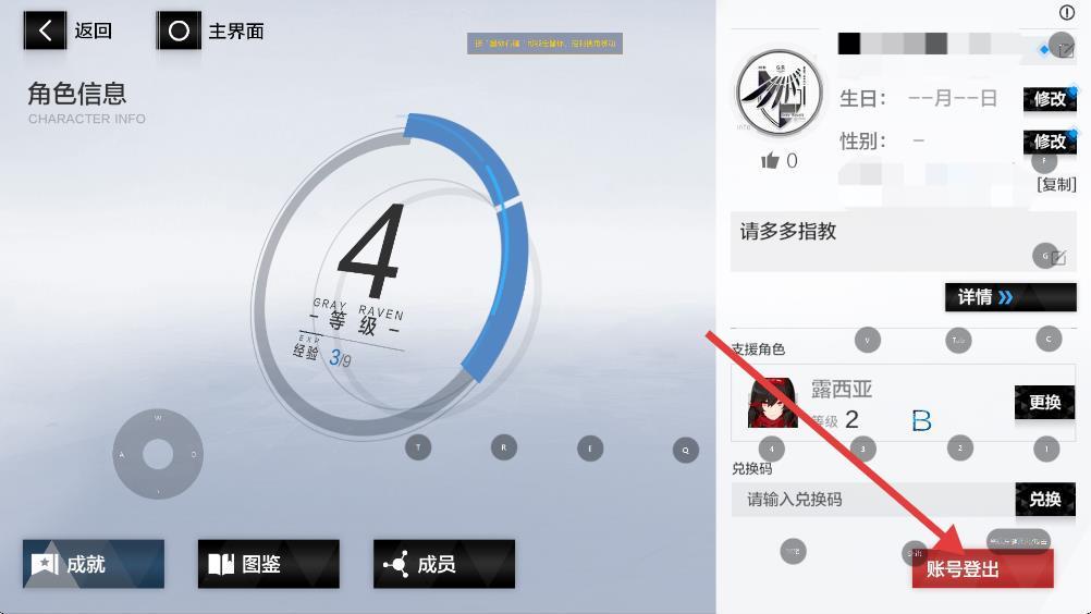2、在角色信息界面,找到并點(diǎn)擊賬號(hào)登出按鈕,觸發(fā)賬號(hào)登出操作。