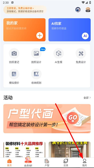 1、打開戶型相關(guān)軟件,進入后點擊進入知戶型按鈕,進入登錄注冊選擇頁面。