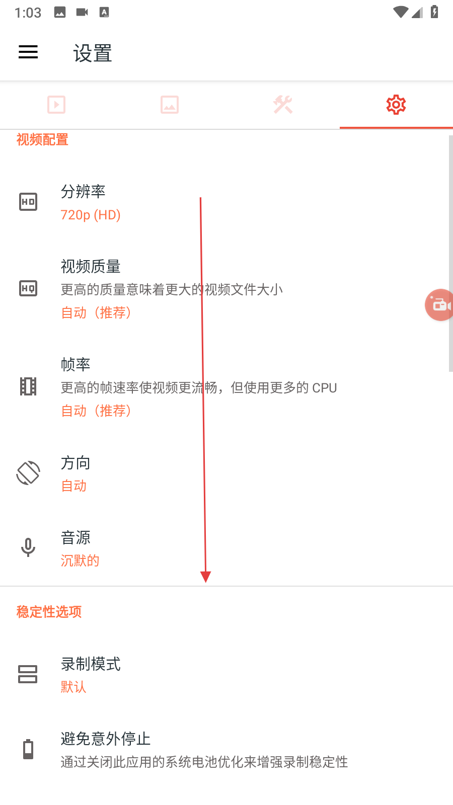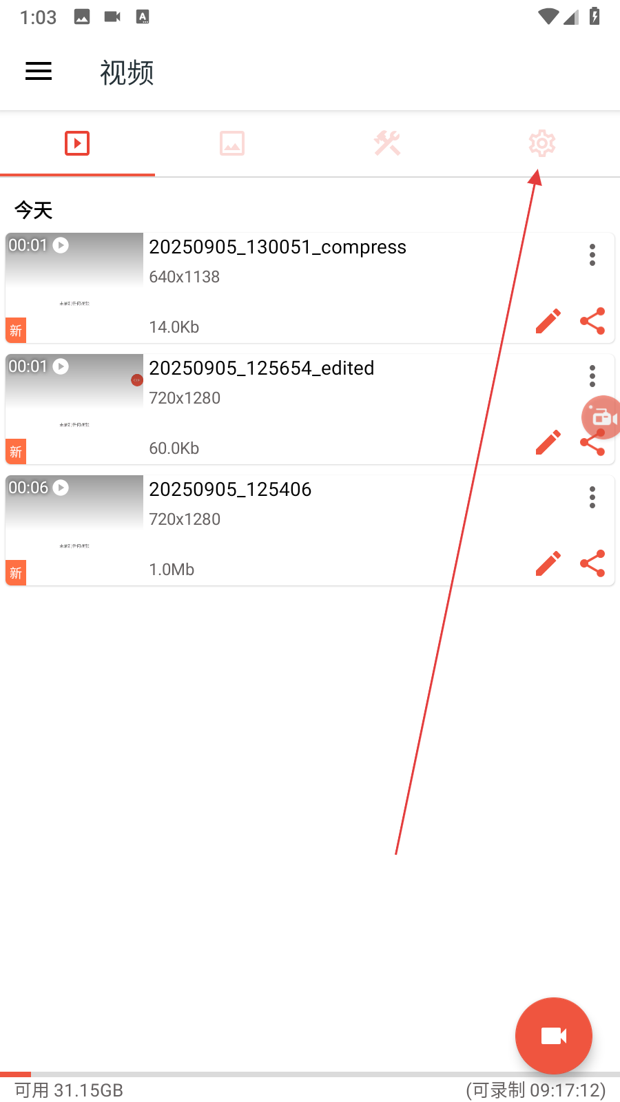 1、打開AZ Screen Recorder應用,在視頻列表界面點擊右上角的設(shè)置圖標,進入設(shè)置頁面。