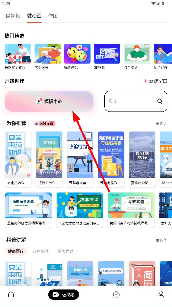 1、打開來畫app,點擊底部導航欄中的做視頻選項。