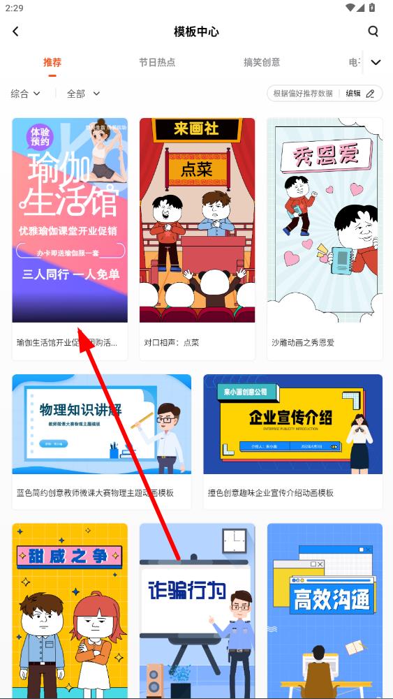 3、在模板中心頁面,瀏覽并選擇你需要的模板,點擊該模板進入模板預覽頁面。