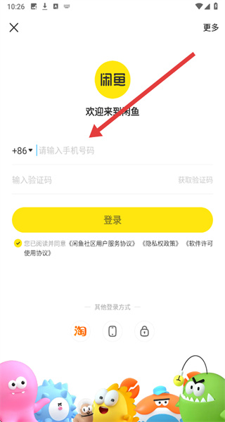 3、在進(jìn)入到登錄頁(yè)面后,可以點(diǎn)擊輸入框,填寫手機(jī)號(hào)以便獲取驗(yàn)證碼登錄。
