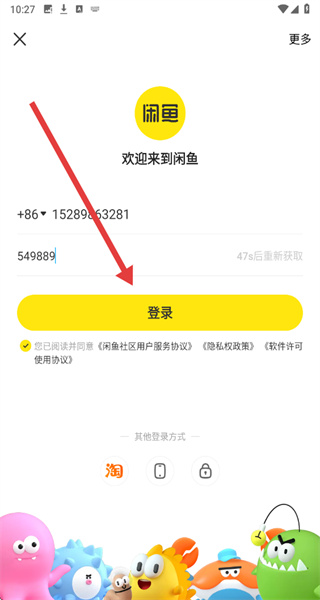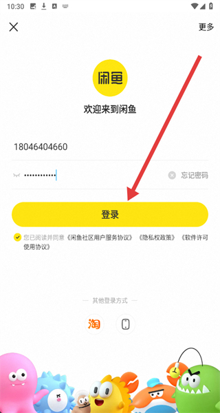 4、點(diǎn)擊“登錄”按鈕,完成閑魚賬號(hào)的登錄操作。