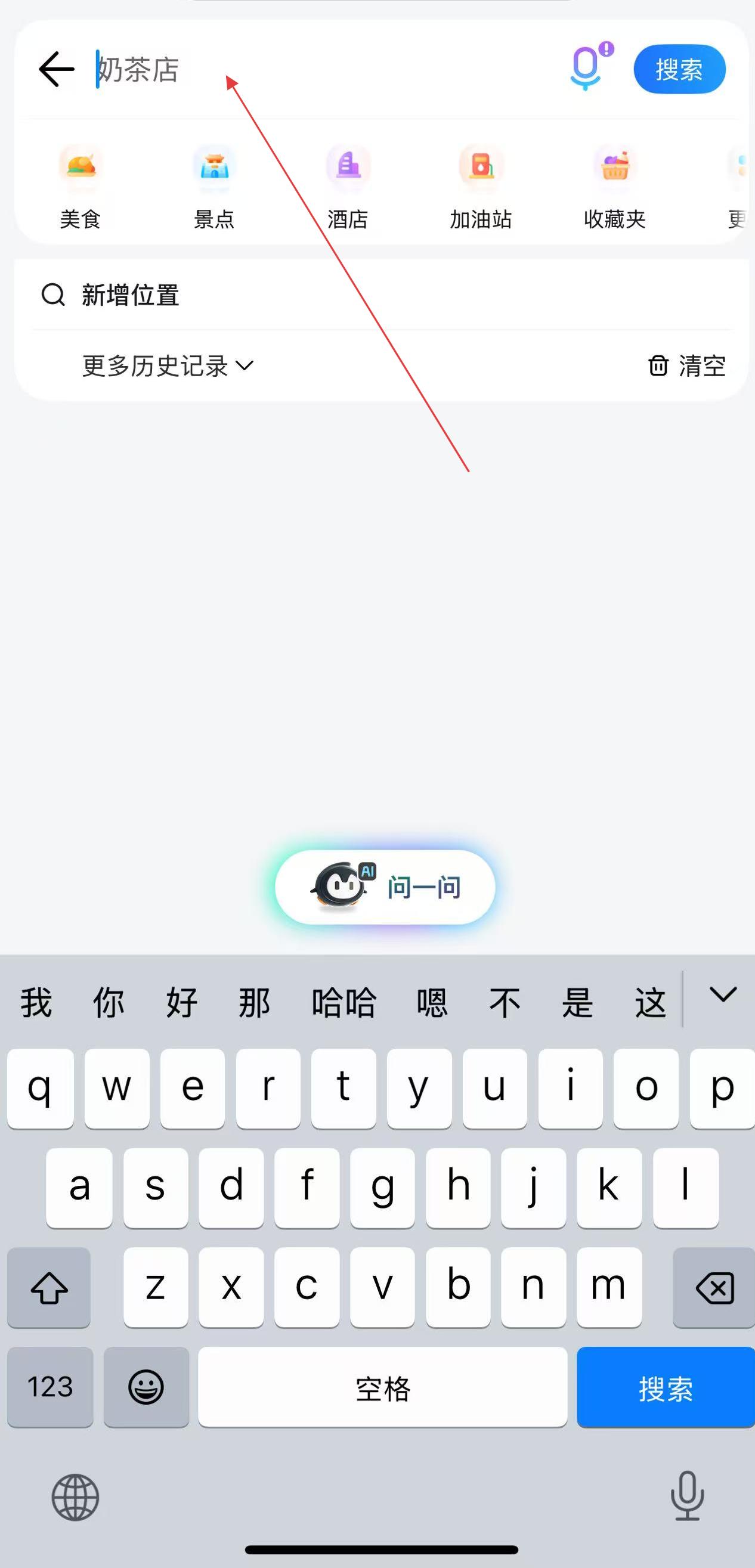 2、輸入完成后,點(diǎn)擊鍵盤上的搜索按鈕,或者點(diǎn)擊搜索欄右側(cè)的藍(lán)色搜索按鈕 。