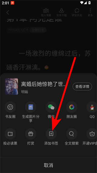 3、在功能列表中,點(diǎn)擊添加書簽選項(xiàng),即可完成書簽添加。