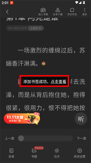 1、在七貓小說(shuō)書城頁(yè)面,選擇要添加書簽的小說(shuō),進(jìn)入小說(shuō)閱讀界面。